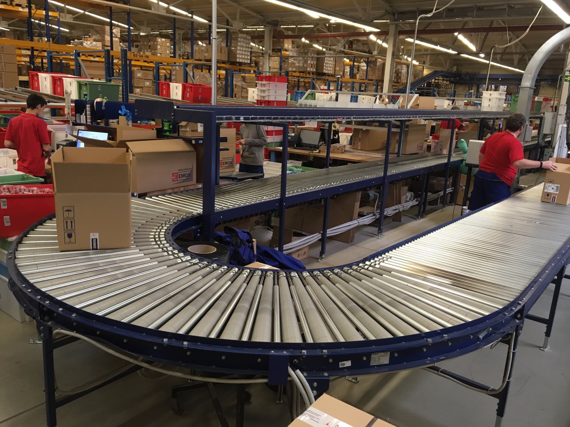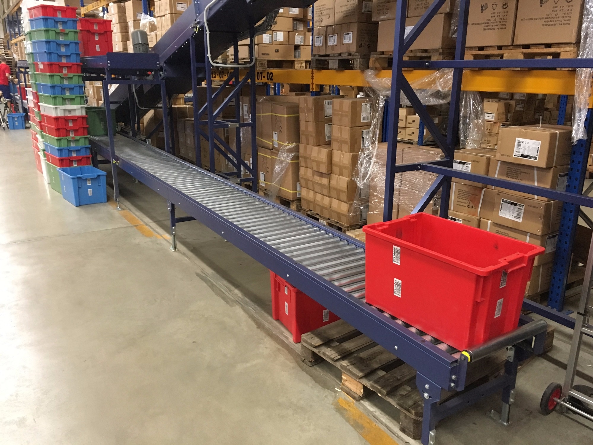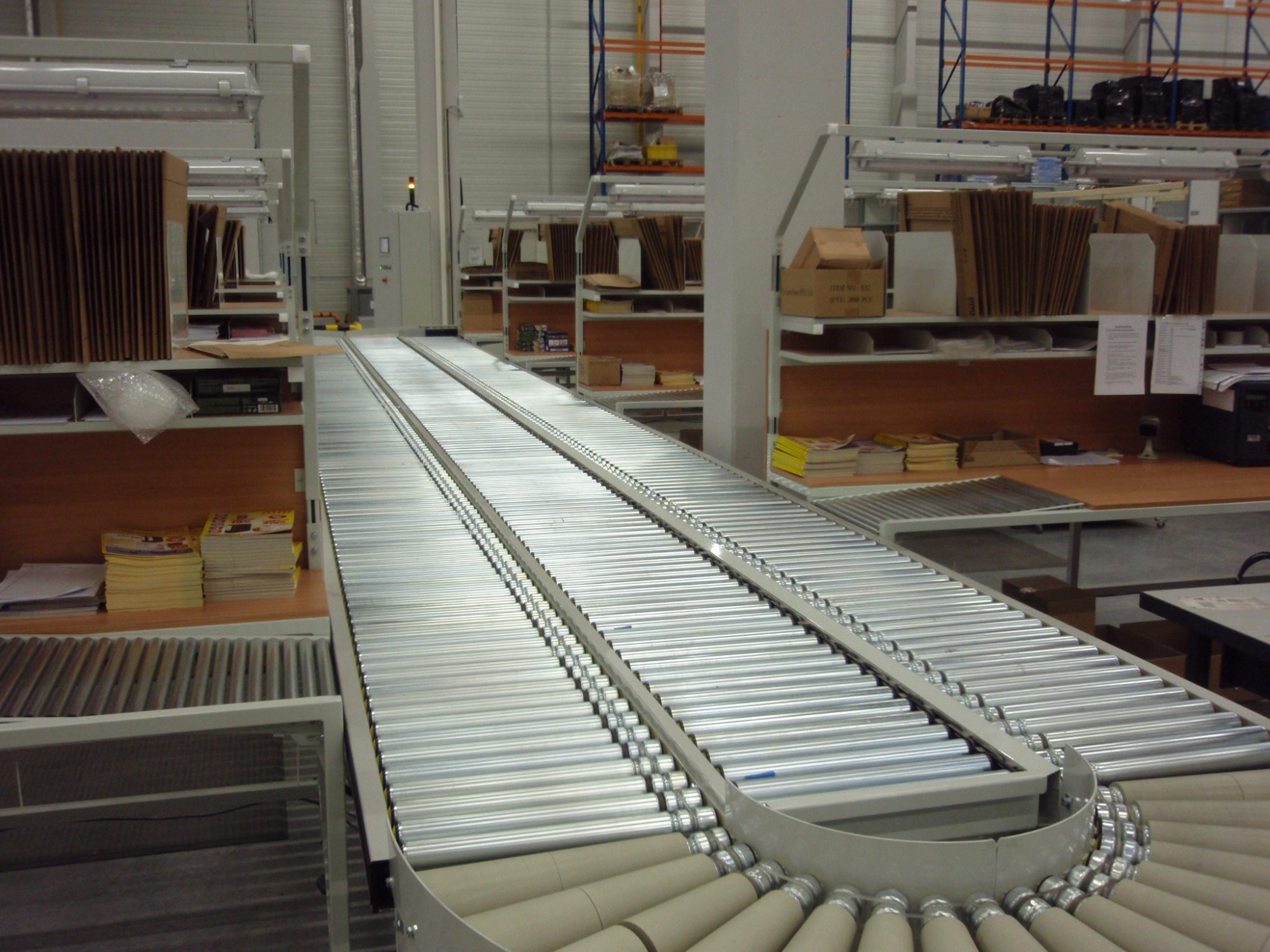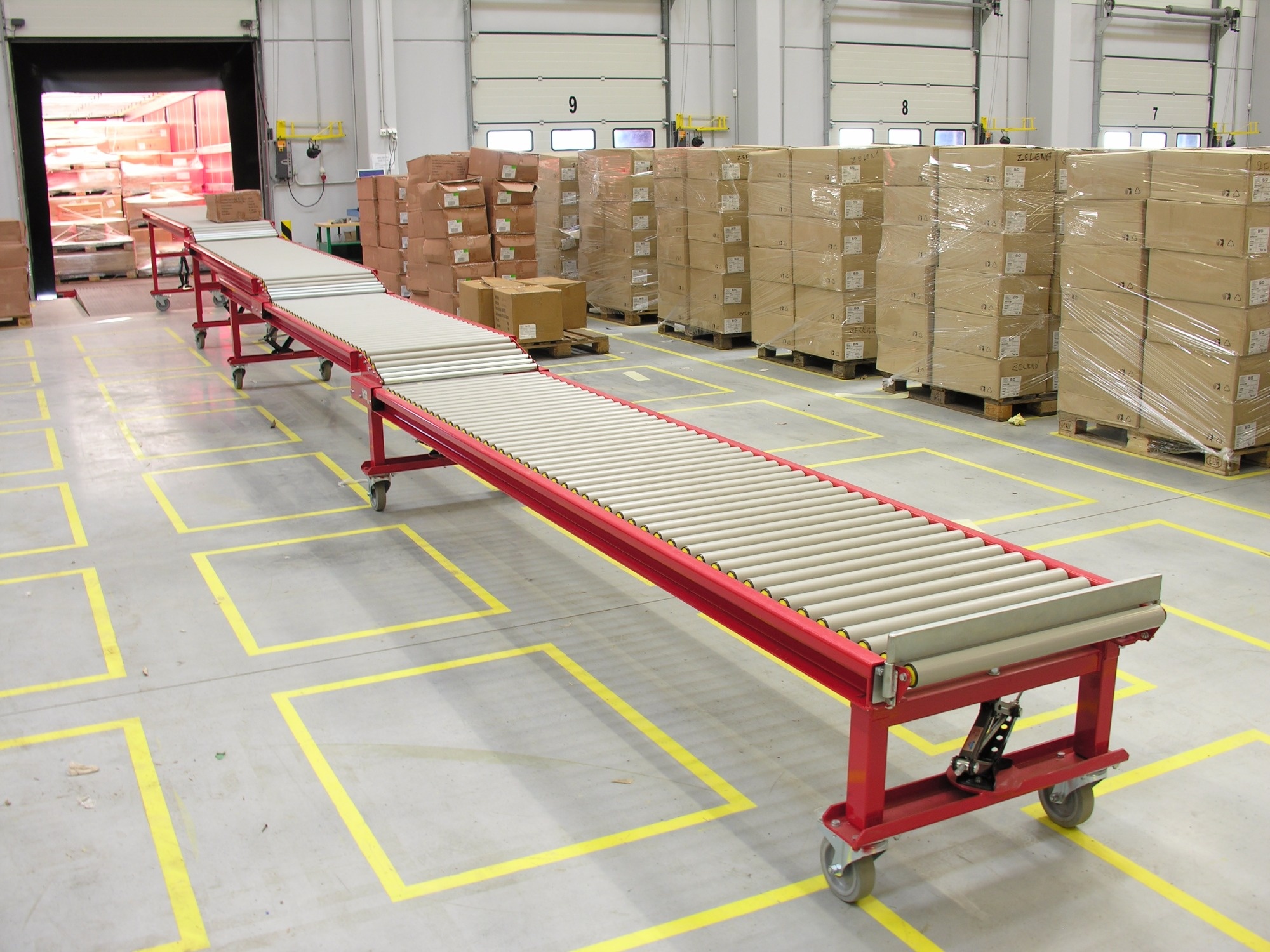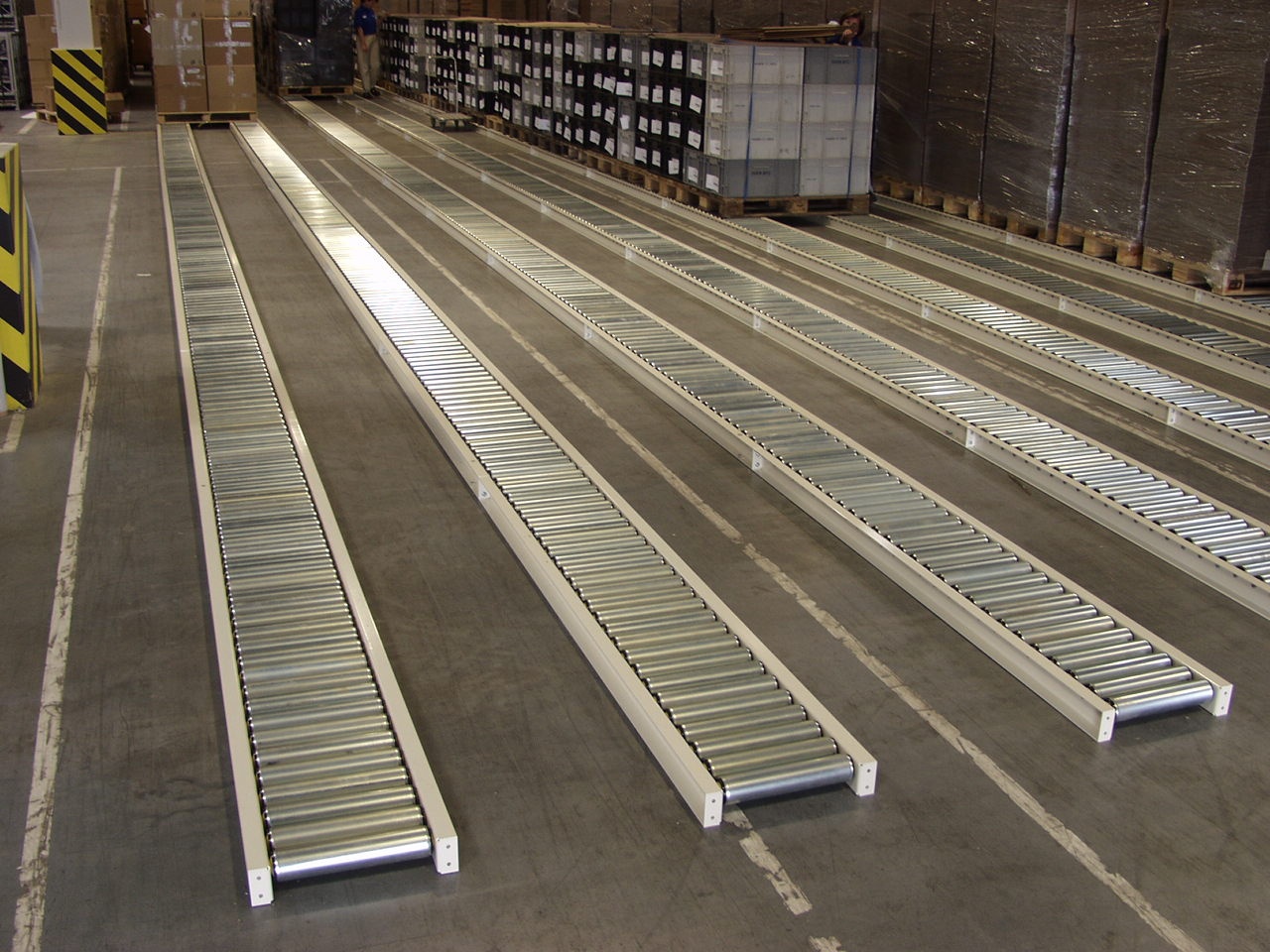 1. Non-powered conveyors – Goods are moved by gravity or can be manually pushed.