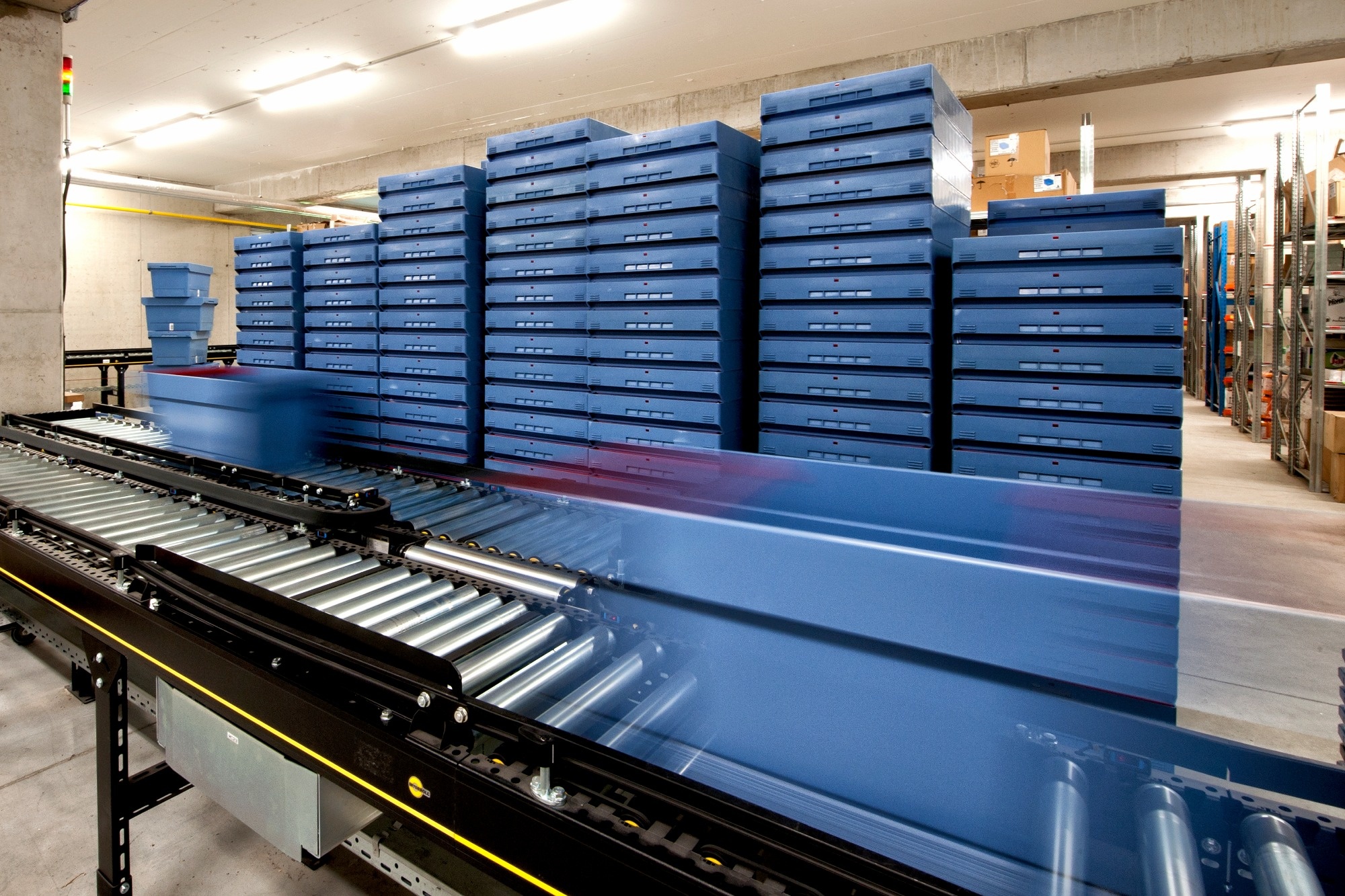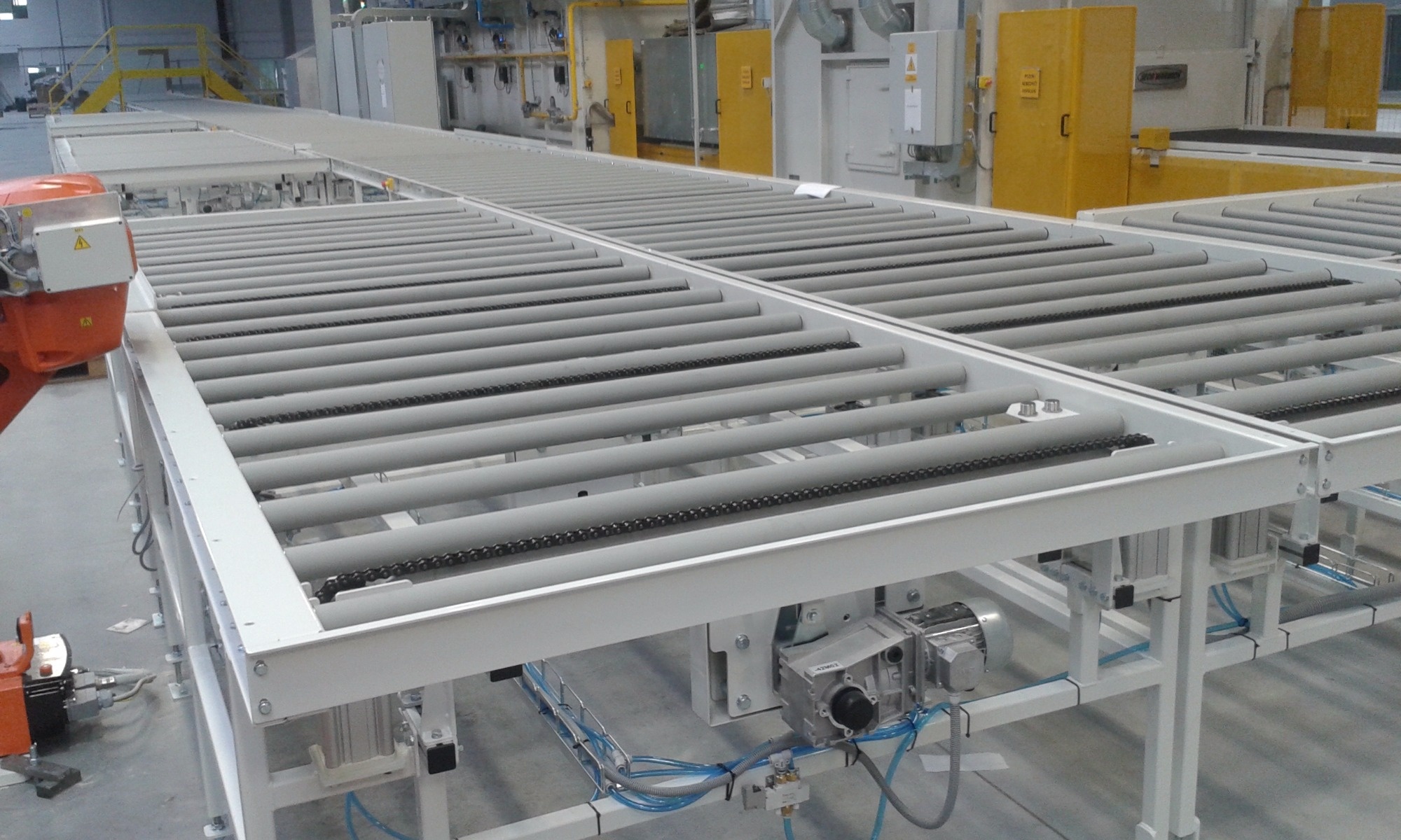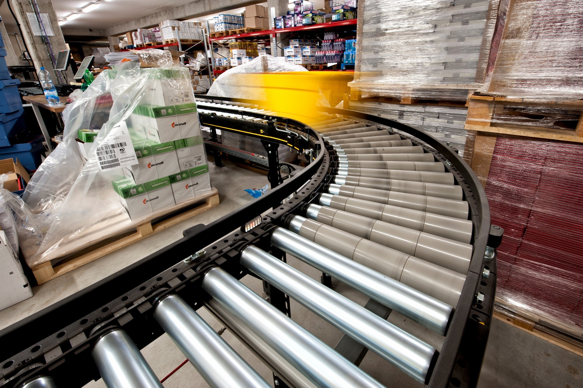 Roller conveyors are ideal for unit load transport and can be either powered or non-powered. These conveyors are suitable for a wide range of applications, including the transport of cardboard boxes, plastic crates, and wooden pallets. The design of the conveyors and the rollers used is tailored to the dimensions and weight of the transported material, ensuring optimal performance.